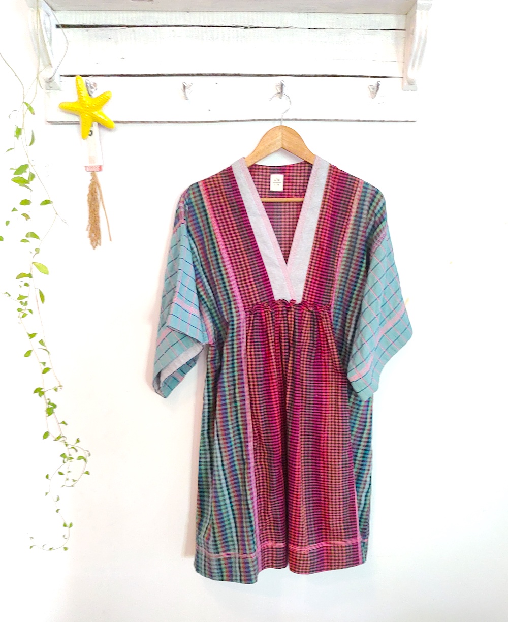 Checkered Kimono Kaftan Dress