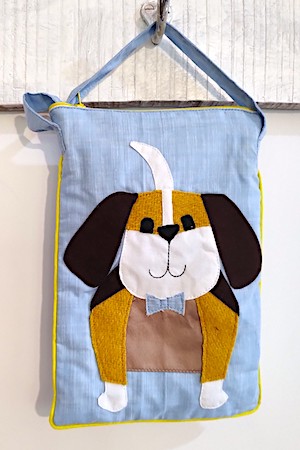 Doggie Sling bag with a  beagle doggo patchwork on cotton chambray fabric