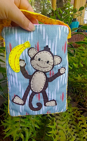 • 6″X8.5″ cotton sling with monkey patchwork and a long strap( 50″ round total)