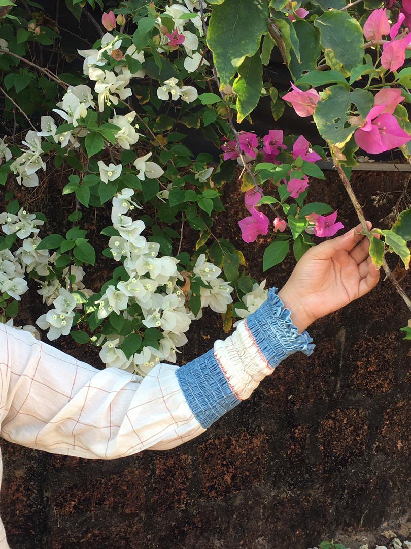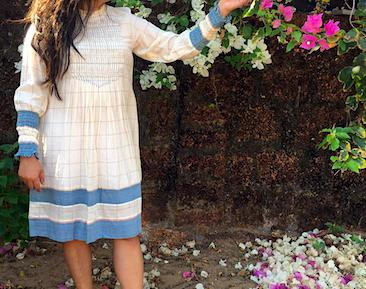 Pleated Ocean Dress made from a delicate handloom with smocked sleeve details