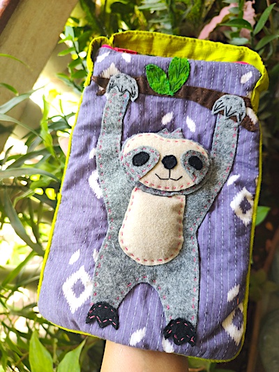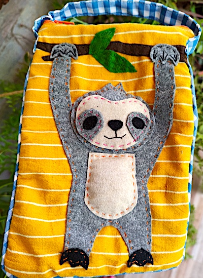 • 6.5″X9.5″ cotton sling with sloth patchwork with a long strap ( 50″round total)