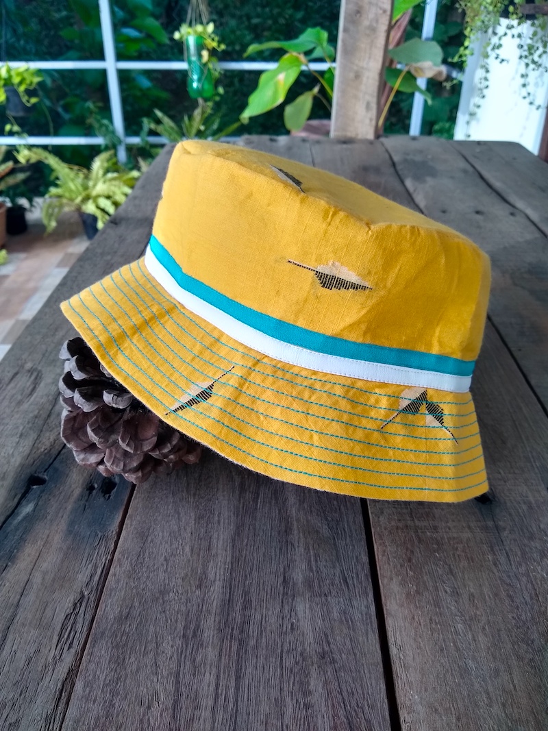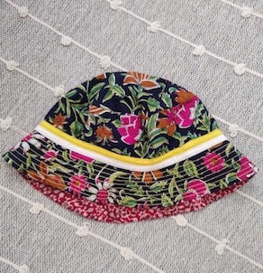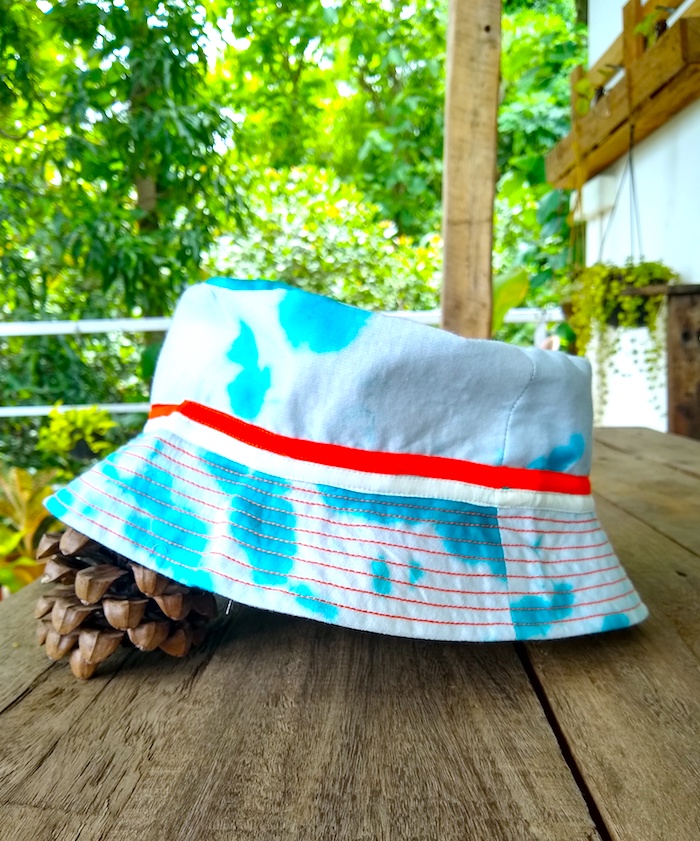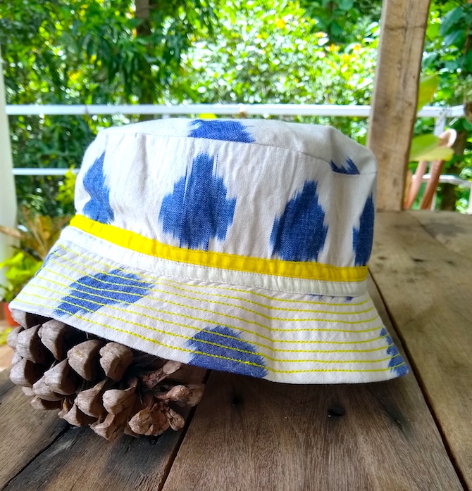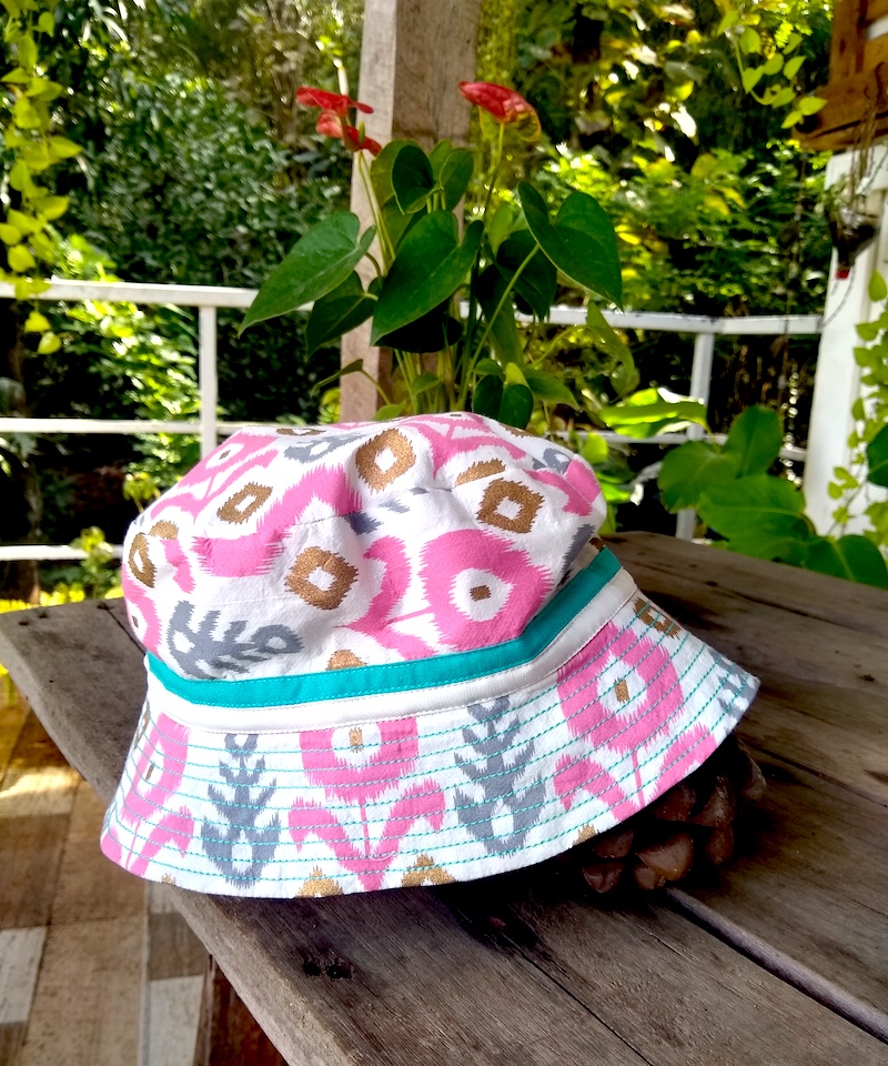 Tropical bucket hat made using repurposed textiles as a part of our zerowaste initiative.
