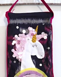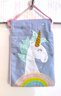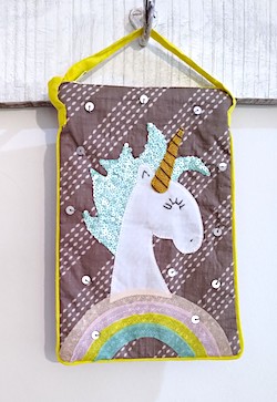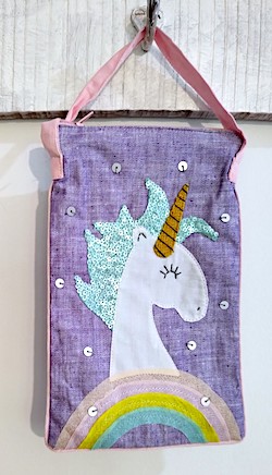 Unicorn Love Sling Bag with embellished Unicorn patchwork and a pop color piping detail.
